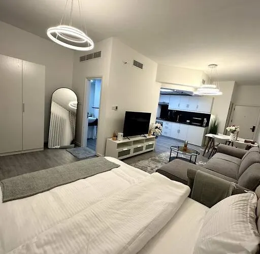 Tijdens hun verblijf in Dubai Marina - Huge Luxury Studio Apartment van 55 m^2, kunnen gasten Mamsha Street bezoeken, gelegen op op wandelafstand van ongeveer 5 minuten ervandaan. Er is ook een privézwembad voor een nog aangenamer verblijf.